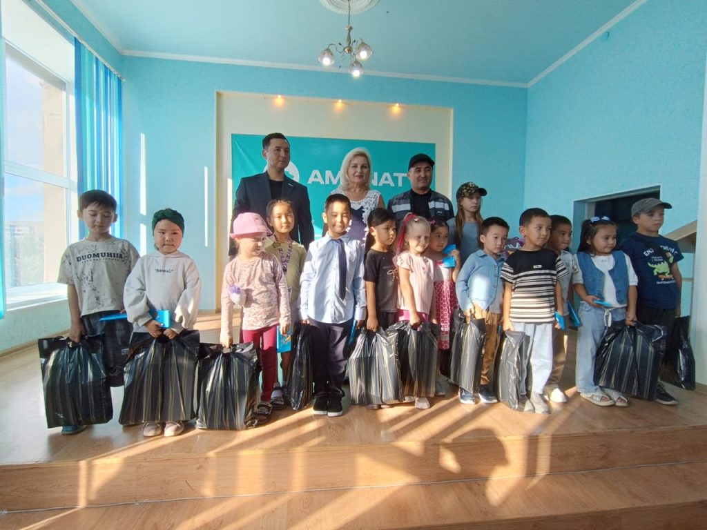 «Аманат» при АО «Qarmet» и вручили 11 ранцев многодетным родителям работников комбината.